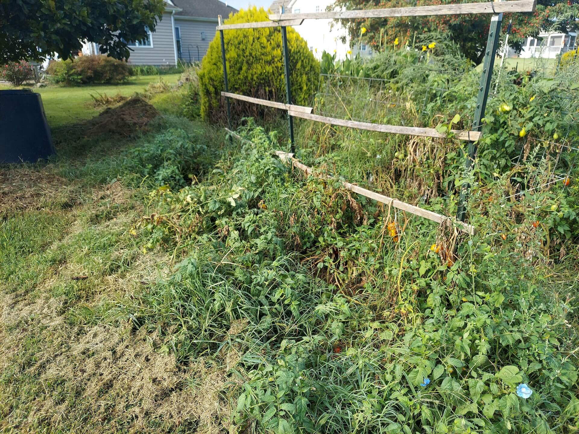 Hidden tomatoes in the weed patch.